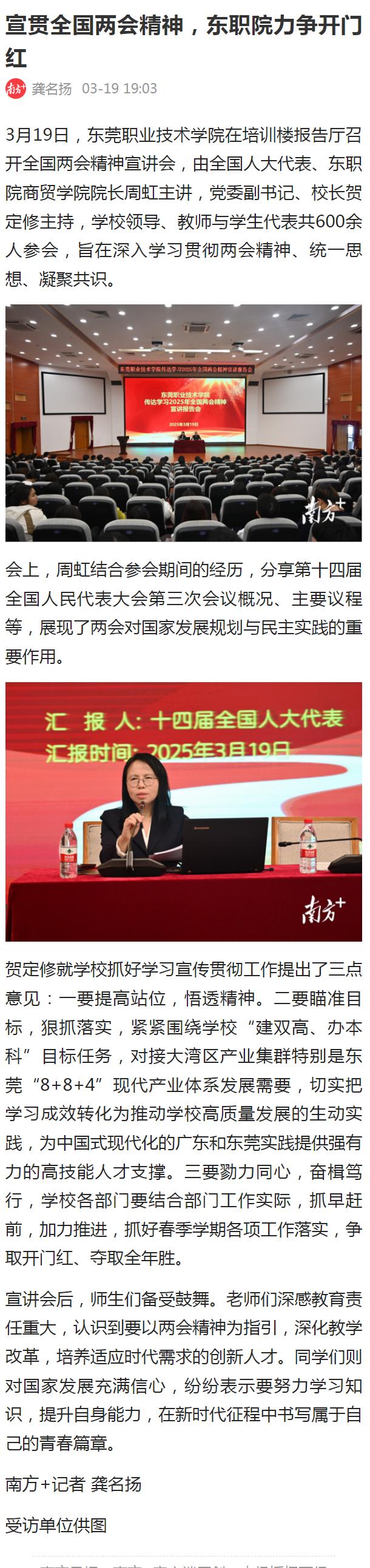 【南方+】宣贯全国两会精神,东职院力争开门红