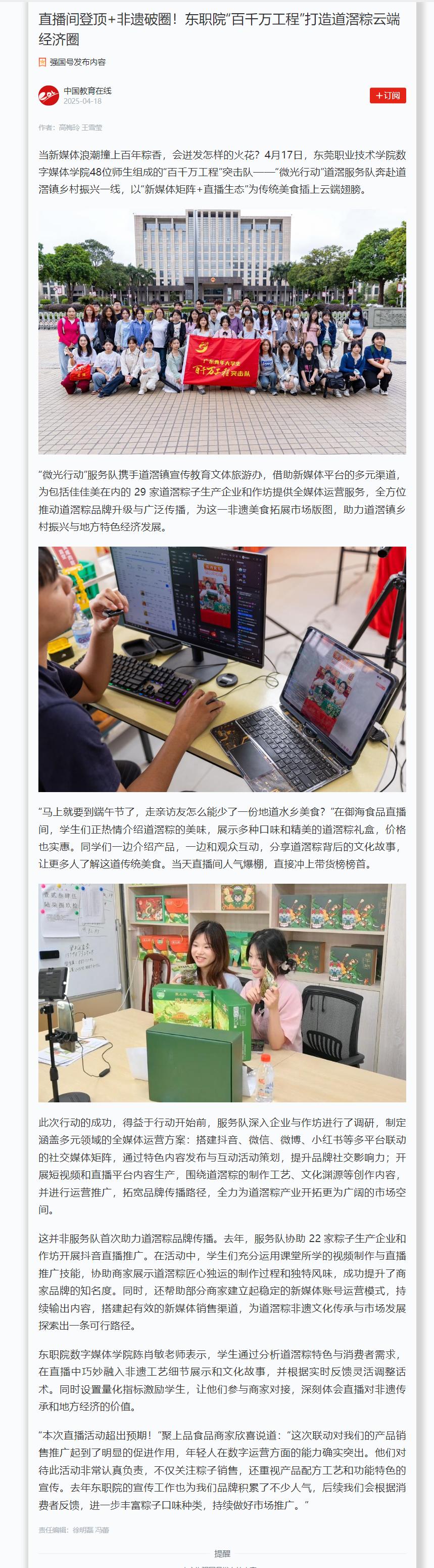 【学习强国】直播间登顶+非遗破圈!东职院“百千万工程”打造道滘粽云端经济圈