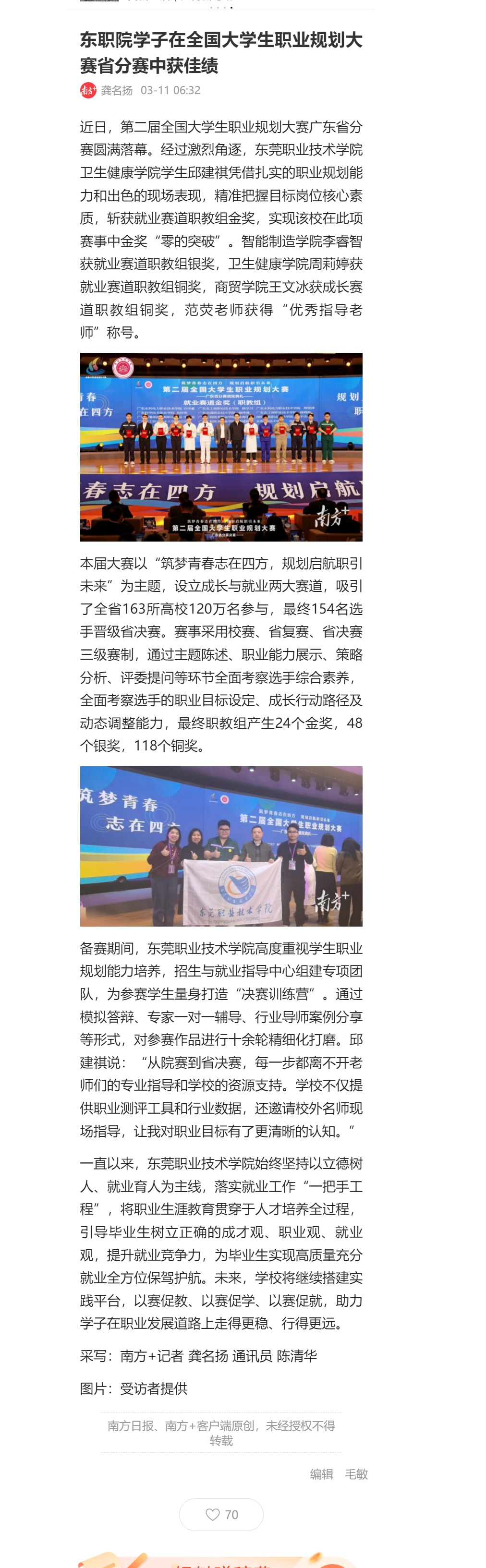 【南方+】东职院学子在全国大学生职业规划大赛省分赛中获佳绩
