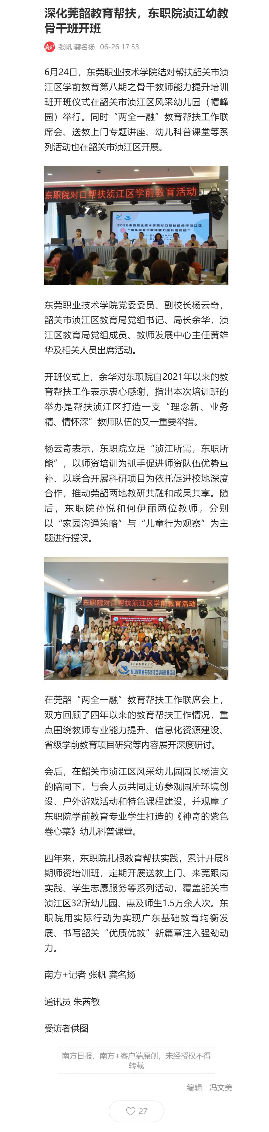 【南方+】深化莞韶教育帮扶,东职院浈江幼教骨干班开班