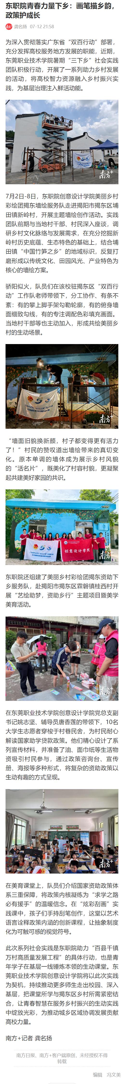 【南方+】东职院青春力量下乡:画笔描乡韵,政策护成长