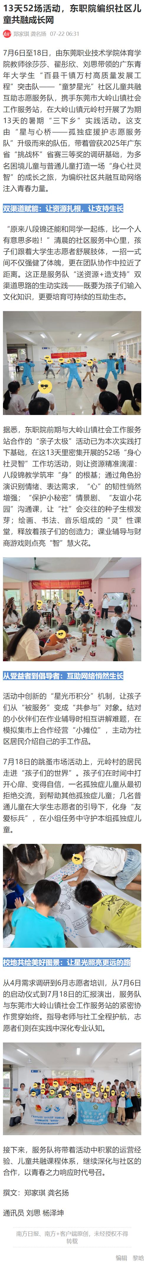 【南方+】13天52场活动,东职院编织社区儿童共融成长网