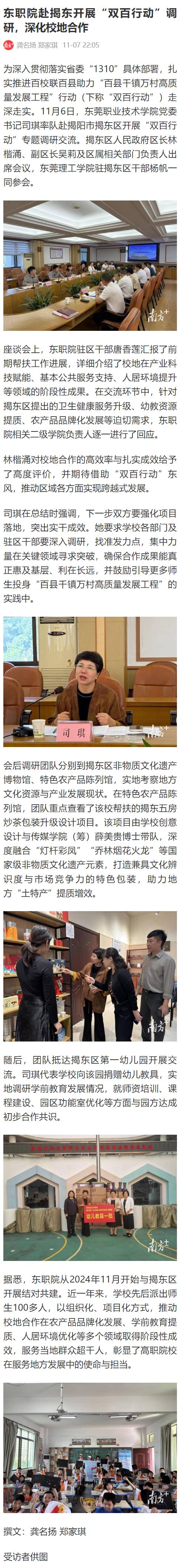 【南方+】东职院赴揭东开展“双百行动”调研,深化校地合作