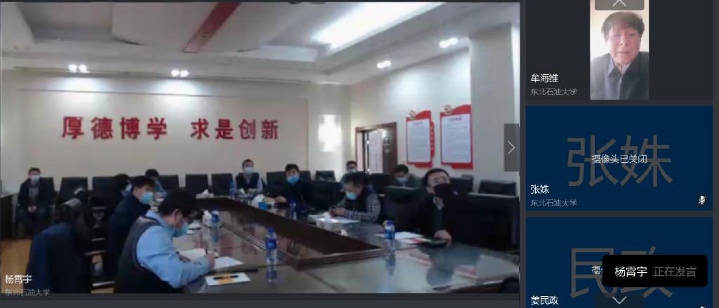 牟海维通过视频在会上致辞,他指出,我校在地热研究领域有20多年沉淀,中心的成立是贯彻落实习近平总书记关于能源革命重要论述和国家新发展理念的重要举措,也是学校实施“强陆—拓海—壮新”发展思路的重要抓手,在疫情期间召开校内研讨会具有重要意义,希望通过这次会议使协同创新中心尽快走上快速发展的通道,在今年的教育厅验收中取得良好成绩。