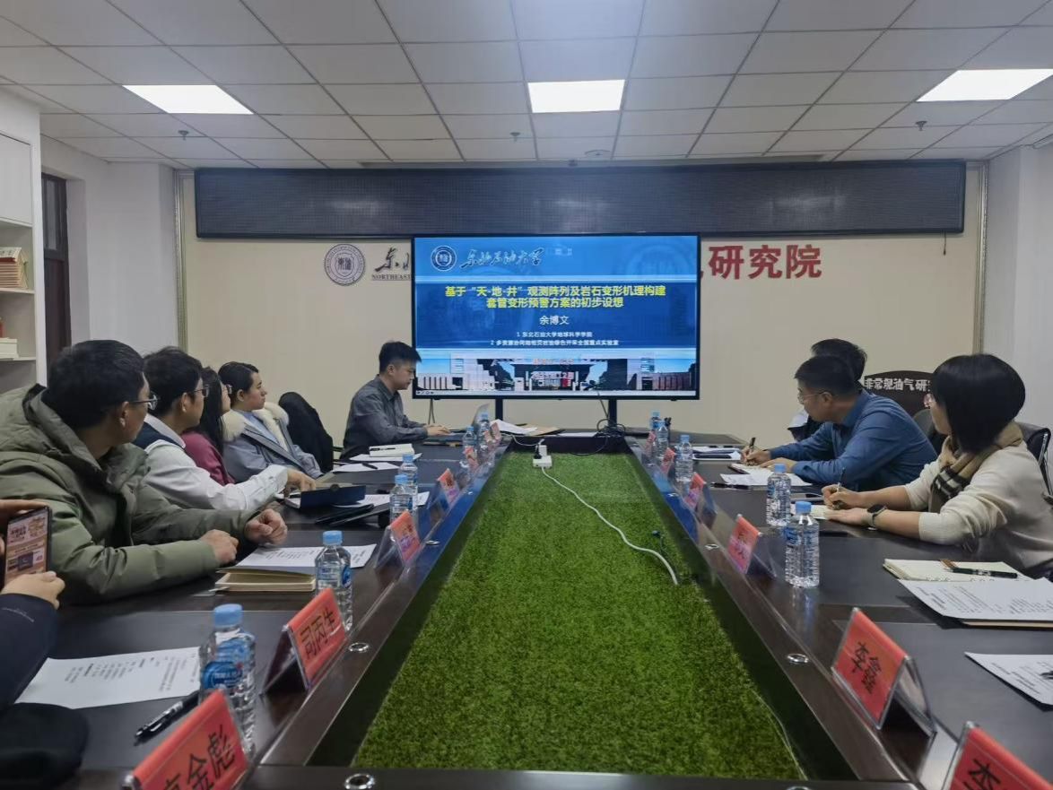 会议期间,beat365在线唯一官网副教授余博文汇报了“基于‘天-地-井’观测及岩石变形机理的套管变形预警方案的初步设想”,系统阐述了该方案对解决油田套管损坏工程难题的价值与可行性。大庆油田第四采油厂技术与管理骨干结合油田现场生产实际,就套管变形的痛点问题、技术需求与方案落地的实操性展开交流;南方测绘科技有限公司GNSS事业部总监徐振海、大庆区域经理司丙生则从测绘技术支撑角度,探讨了“天-地-井”多维度观测的技术实现路径。三方就技术研发、成果转化等达成共识,计划开展示范区试点建设,携手推动油田套管变形预警技术落地,以产学研融合赋能油田高质量开发。