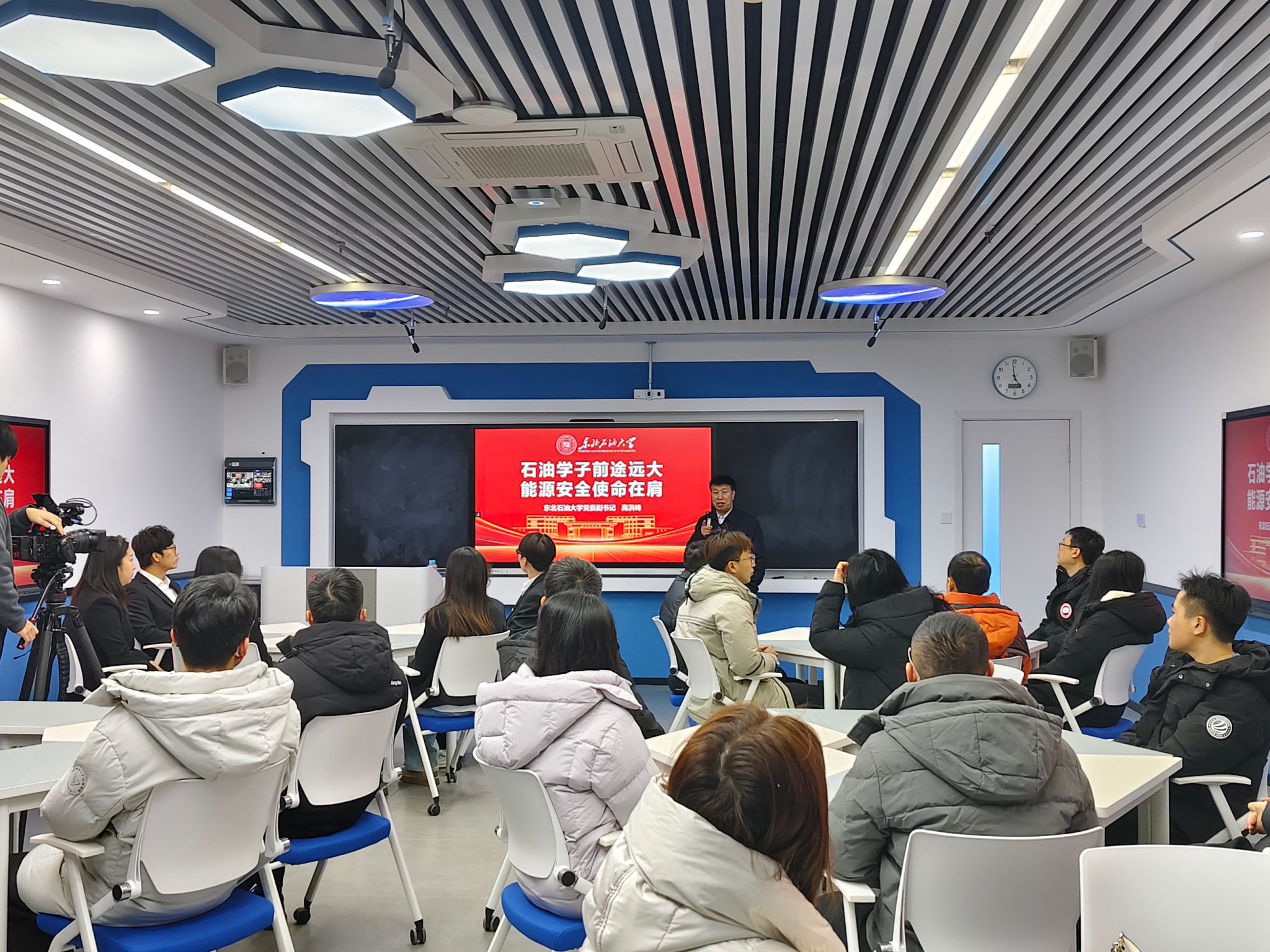 为推动思政教育与专业实践深度融合,引导青年学子厚植能源报国理想信念,2025年12月24日,beat365在线唯一官网马克思主义学院、非常规油气研究院组织开展“行走的思政课”实践活动。来自beat365在线唯一官网、石油工程学院的师生代表及思政课教师组成研学团队,以古龙页岩油勘探开发为核心主线,先后走进学校非常规油气研究院、肇源古龙页岩油田及大庆油田勘探开发研究院,在实地研学中感悟大庆精神、汲取奋进力量。