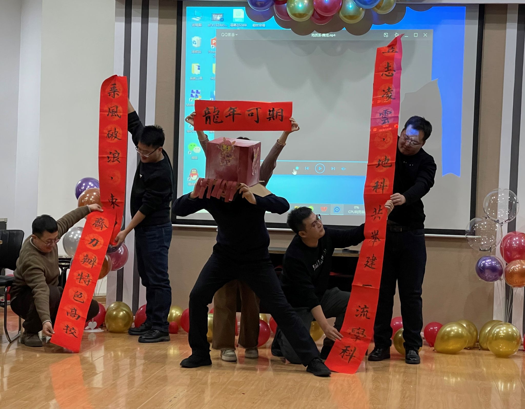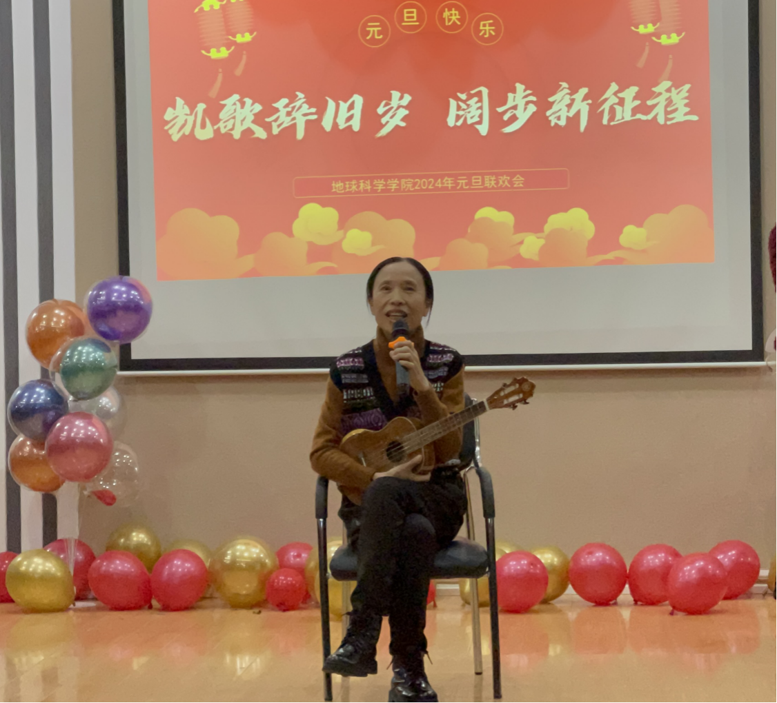 联欢会上,来自学院各部门5支队伍的教职工表演了丰富多彩的文艺节目。有学院领导班子精彩演绎的《壮志在我胸》,有荣休教师感人的弹唱《送别》,有勘技专业教师温馨悠扬的小合唱《明天会更好》、《勘探队员之歌》,有地质专业教师精心设计的《舞龙》,有勘资专业教师振奋激昂的《精忠报国》,有院办教师原创幽默的三句半《戏说地科》,有辅导员们欢快活力的《唱响2024》,还有青年教师深情朗诵的《我的祖国》。有的婉转轻快,有的深情款款,有的荡气回肠。