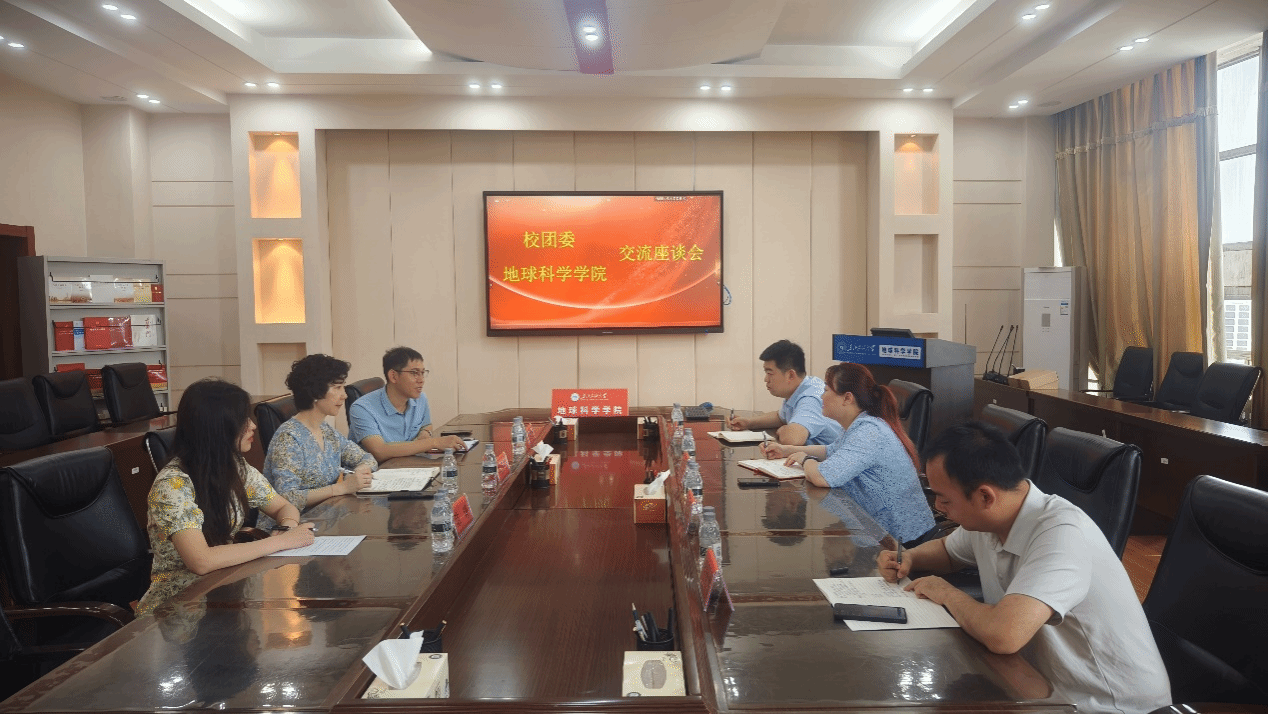 2024年7月12日上午,校团委书记施洋、副书记金海燕、副书记王锐一行到beat365官网交流座谈,会议在地科馆514会议室举行。学院党委书记韦丹宁、副院长王海学、辅导员陈曦参加座谈。