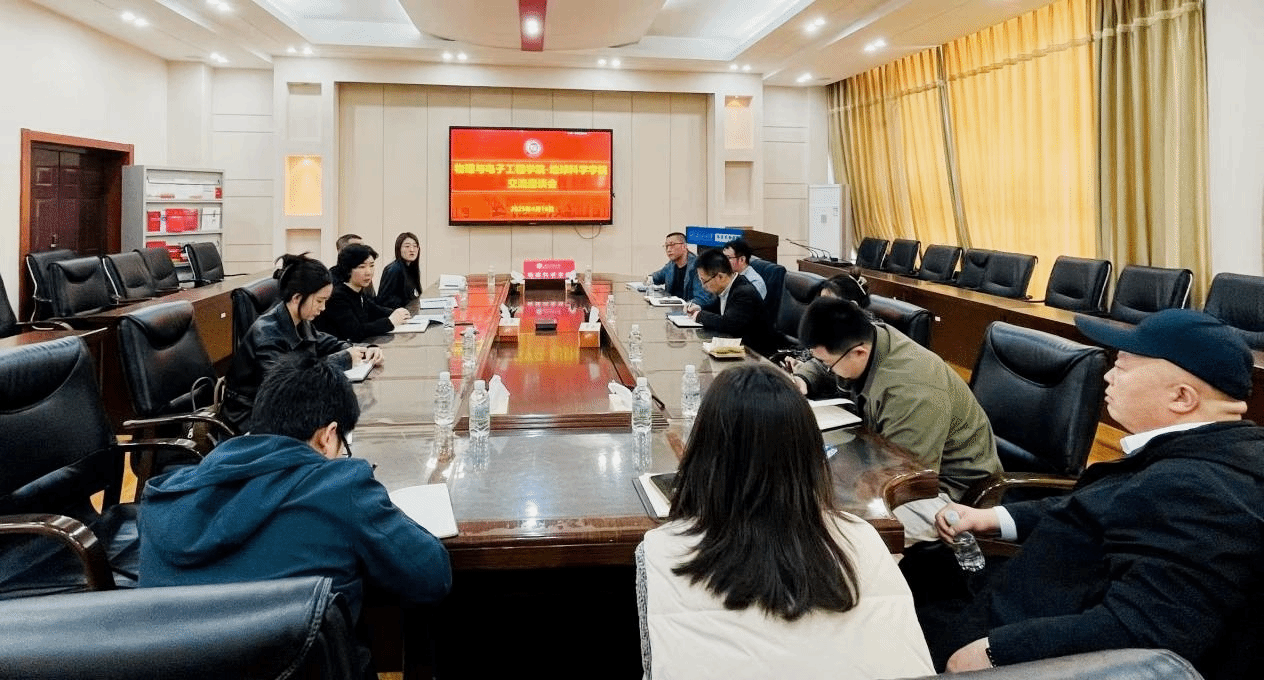 4月16日,物理与电子工程学院党委书记刘超,党委副书记王东明、院办主任朱建喜等一行7人来beat365官网座谈交流。学院党委书记韦丹宁、党委副书记王钢及相关人员参加座谈。党委书记韦丹宁主持座谈会。