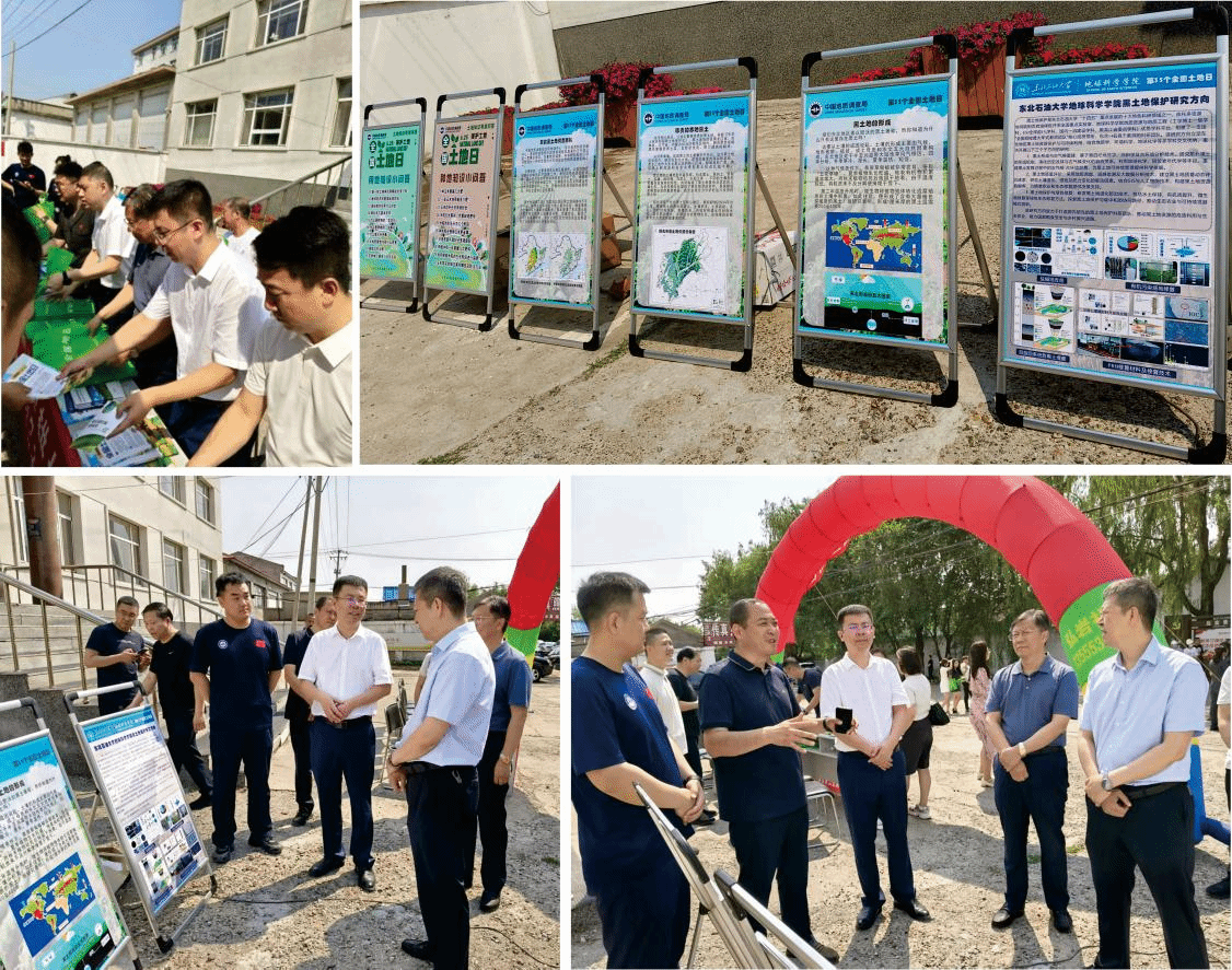 活动以专题讲座的形式拉开序幕。黑龙江省土地学会理事及东北农业大学土地规划系郭欣欣副教授、沈阳地质调查中心刘凯高级工程师分别作主题讲座。beat365官网孙雨院长、张雷教授作为特邀嘉宾出席。随后,各单位在绥化市东富镇政府广场联合开展黑土地保护主题宣传活动。通过发放科普宣传页、悬挂宣传条幅、布置专题展板及现场讲解等形式,多维度开展科普交流。孙雨院长和张雷教授分别就黑土地绿色修复与黑土层埋藏机制,向绥化市副市长朱恒利介绍了beat365官网在黑土地保护领域的研究方向与技术优势。