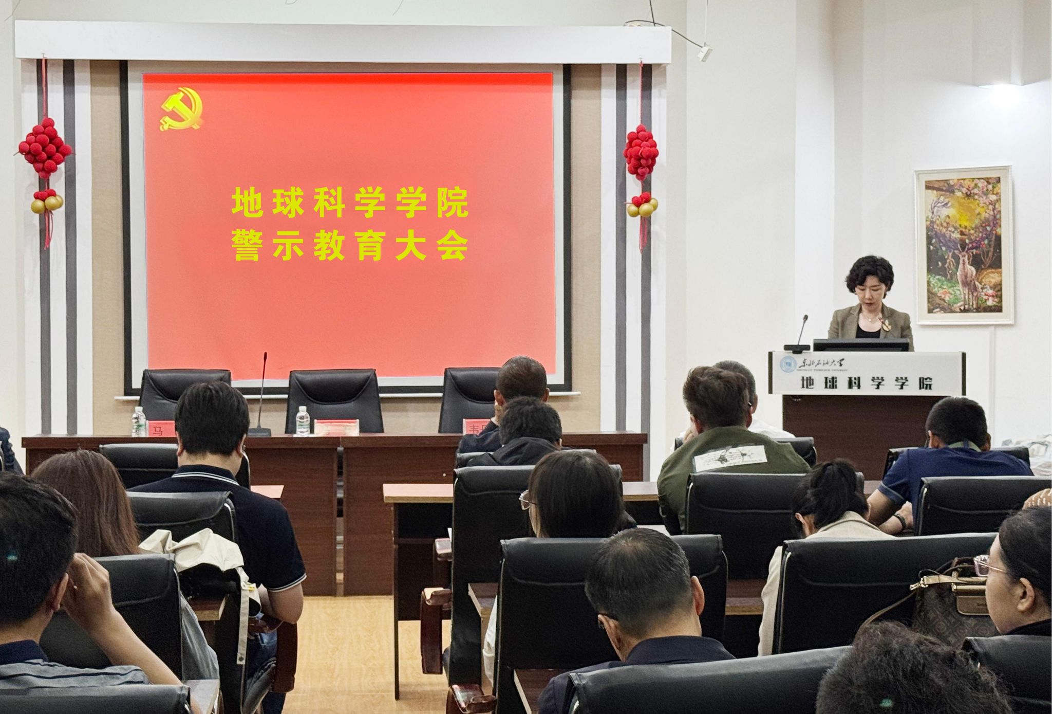 开展警示教育,强化规矩意识。6月10日,学院党委在地科馆514召开了2025年警示教育大会。会上学院党委书记韦丹宁对廉洁文化建设做出部署。全体教师观看了警示教育片《违规吃喝中央新闻通报》。党委副书记、纪委书记王钢传达了省委学习教育专班《关于在全省开展违规吃喝问题再整治的工作方案》以及学校纪委《关于规范党员干部操办婚丧喜庆事宜的暂行规定》。通过深刻的警示案例、严谨的政策解读和严肃的工作部署,有效增强了全体教职工的纪律意识、规矩意识、责任意识和保密意识,为营造风清气正的育人环境奠定了坚实基础。