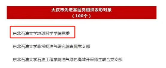 7月1日,中共大庆市委公布了《中共大庆市委关于表彰优秀共产党员、优秀党务工作者和先进基层党组织的决定》,我院党委荣获大庆市先进基层党组织荣誉称号。