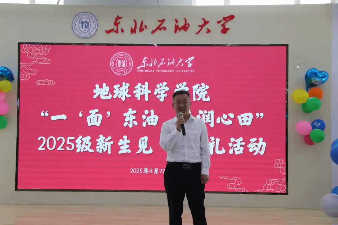 副校长杨二龙代表学校党委向2025级新生表示热烈欢迎,并围绕当前行业形势、校情院情等方面为同学们进行分析与介绍,进一步增强大家对行业与专业的信心。他强调,“一入东油门,铸就东油魂,终身东油人”,并向新生提出三点期望:一要树立远大理想,坚定信念,深入学习和践行习近平新时代中国特色社会主义思想,努力钻研新技术,为国家及学校发展提供支撑;二要弘扬奋斗精神,勇于担当,积极传承以“爱国、创业、求实、奉献”为核心的大庆精神铁人精神,努力成为新时代的铁人传承者;三要常怀感恩之心,做有温度、有情感的东油人,孝敬父母、尊敬师长,珍惜学校创造的优良成长环境。