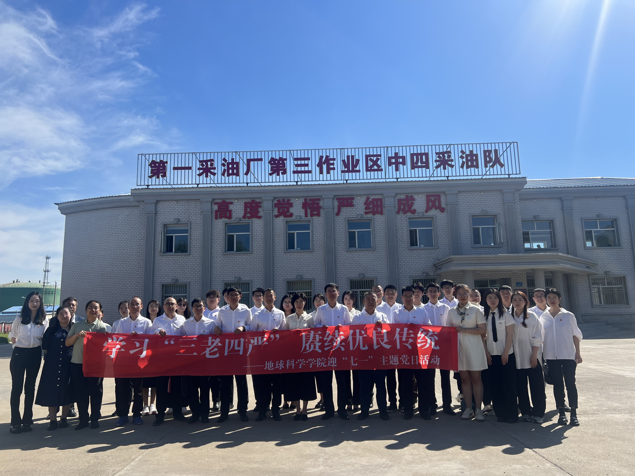 为庆祝中国共产党成立103周年,继承和发扬党的光荣传统与优良作风,6月7日下午,beat365在线唯一官网组织师生党员来到大庆油田中四采油队开展“学习‘三老四严’ 赓续优良传统”迎“七一”主题党日活动。