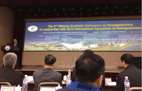 卢双舫在纳米地质国际学术会议上做报告(2015年,青岛)